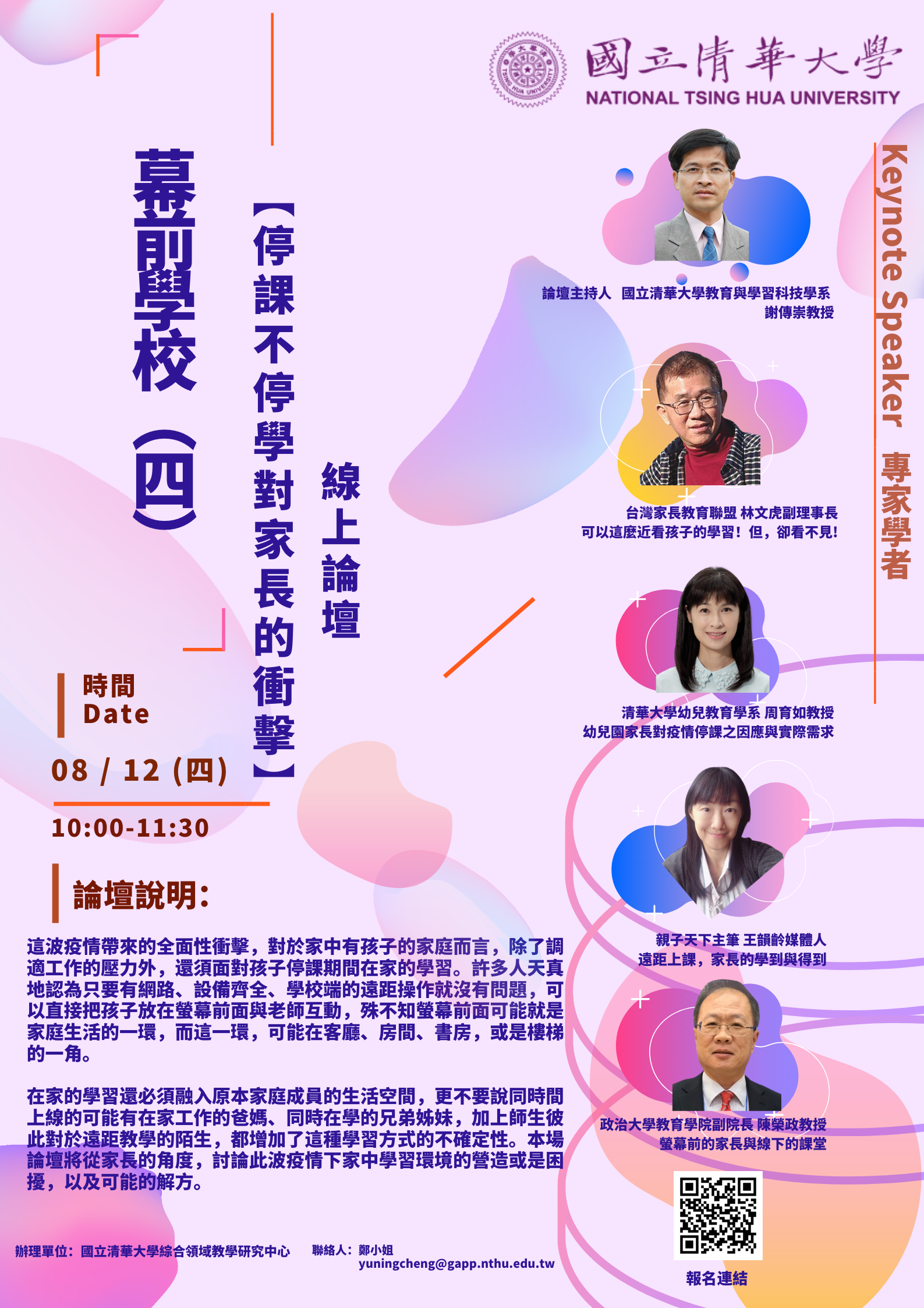 本次論壇係從家長的角度,討論此波疫情下家中學習環境的營造或是困擾,以及可能的解方。