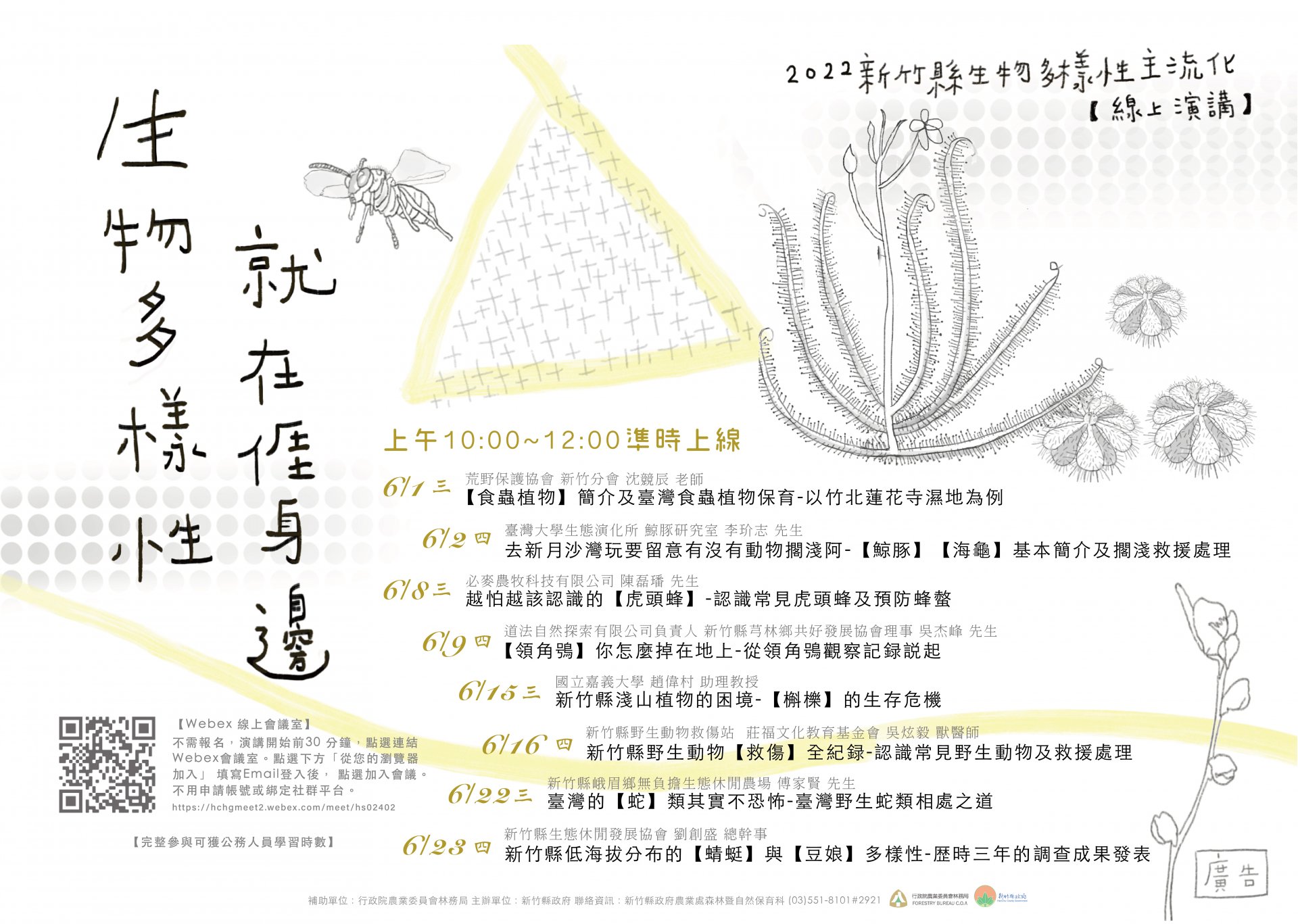新竹縣政府「2022新竹縣生物多樣性主流化」系列線上演講資訊