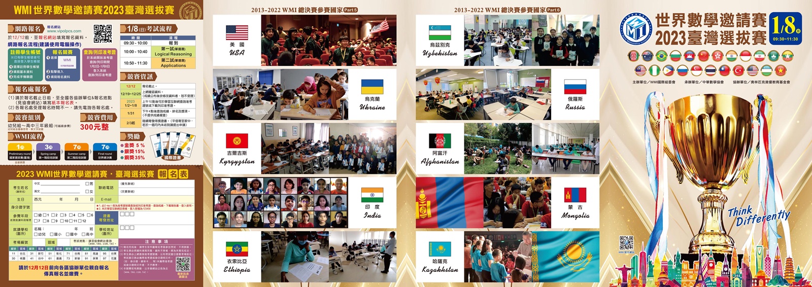 「WMI 世界數學邀請賽-2023 臺灣選拔賽」,凡就讀臺灣各縣市之公私立幼兒園至高中三年級學生之我國籍在學學生,均可報名參加,歡迎愛好數學的學生們踴躍報名,一同響應,為台灣爭取榮耀。