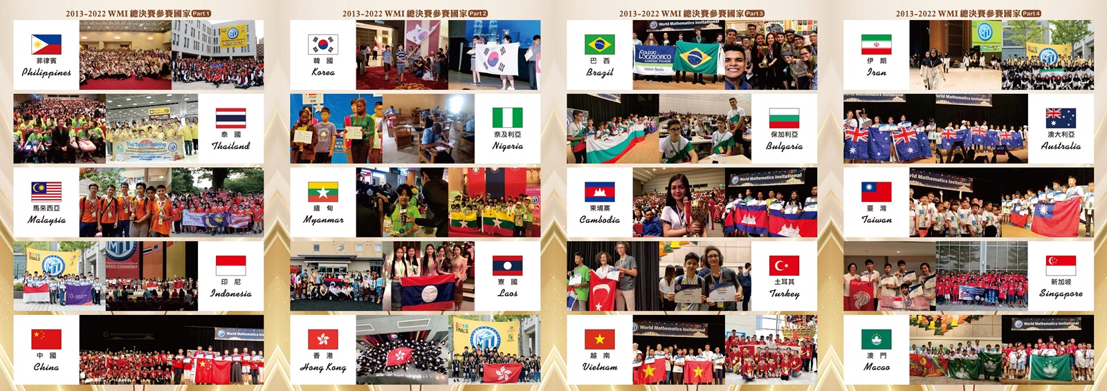 WMI 世界數學邀請賽為第一個由台灣發起舉辦的國際性數學競賽,集合世界各地致力於數學推廣組織機構,每年將在不同國舉辦。