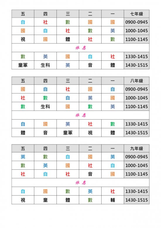 課表時間詳見附件