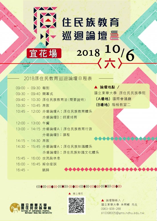 五、旨揭論壇資訊請參閱附件一(含議程),亦可洽東華大學原住