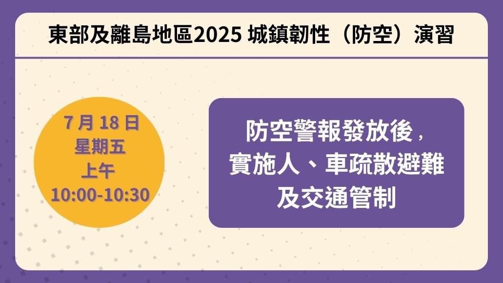 三、演習時間: 114 年 7 月 18 日(星期五) 10 時至 10 時 30 分。