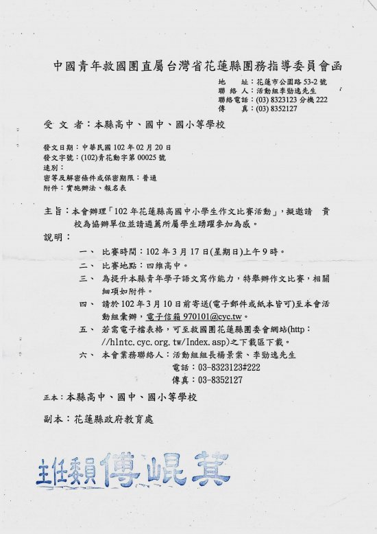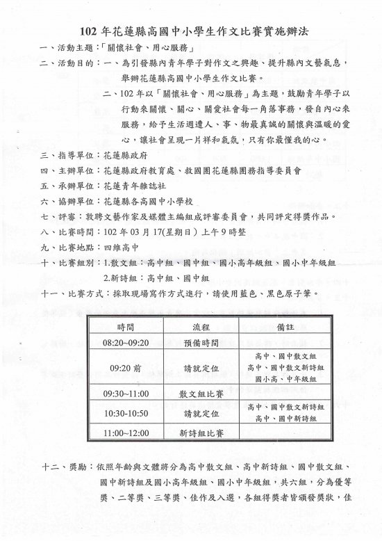 緊急更正---102年救國團作文比賽