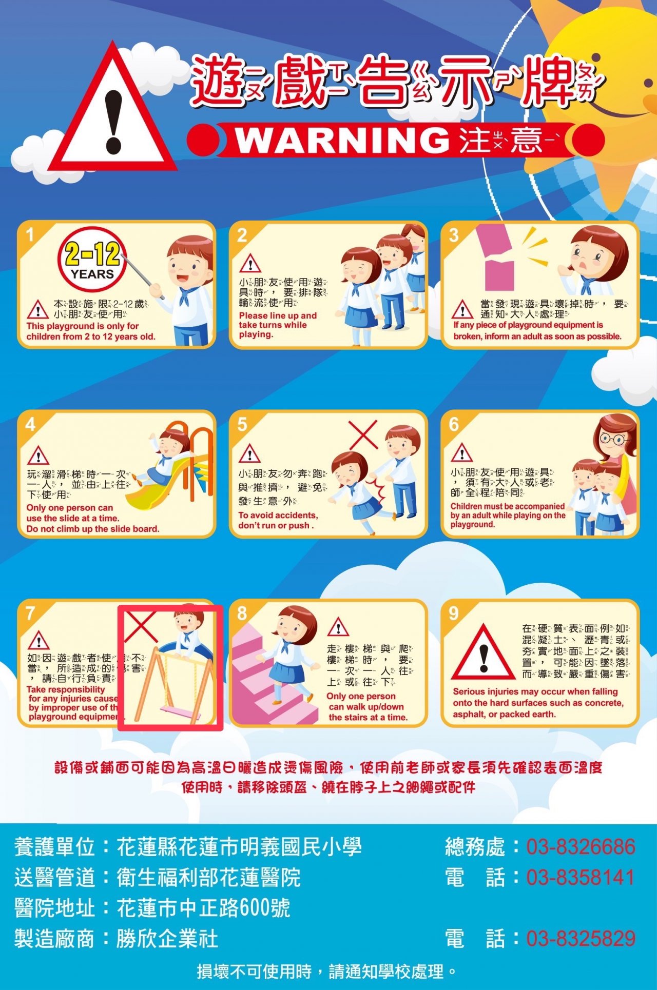 3. 遊樂設施若遇高溫則暫停使用,以免發生燙傷事件。