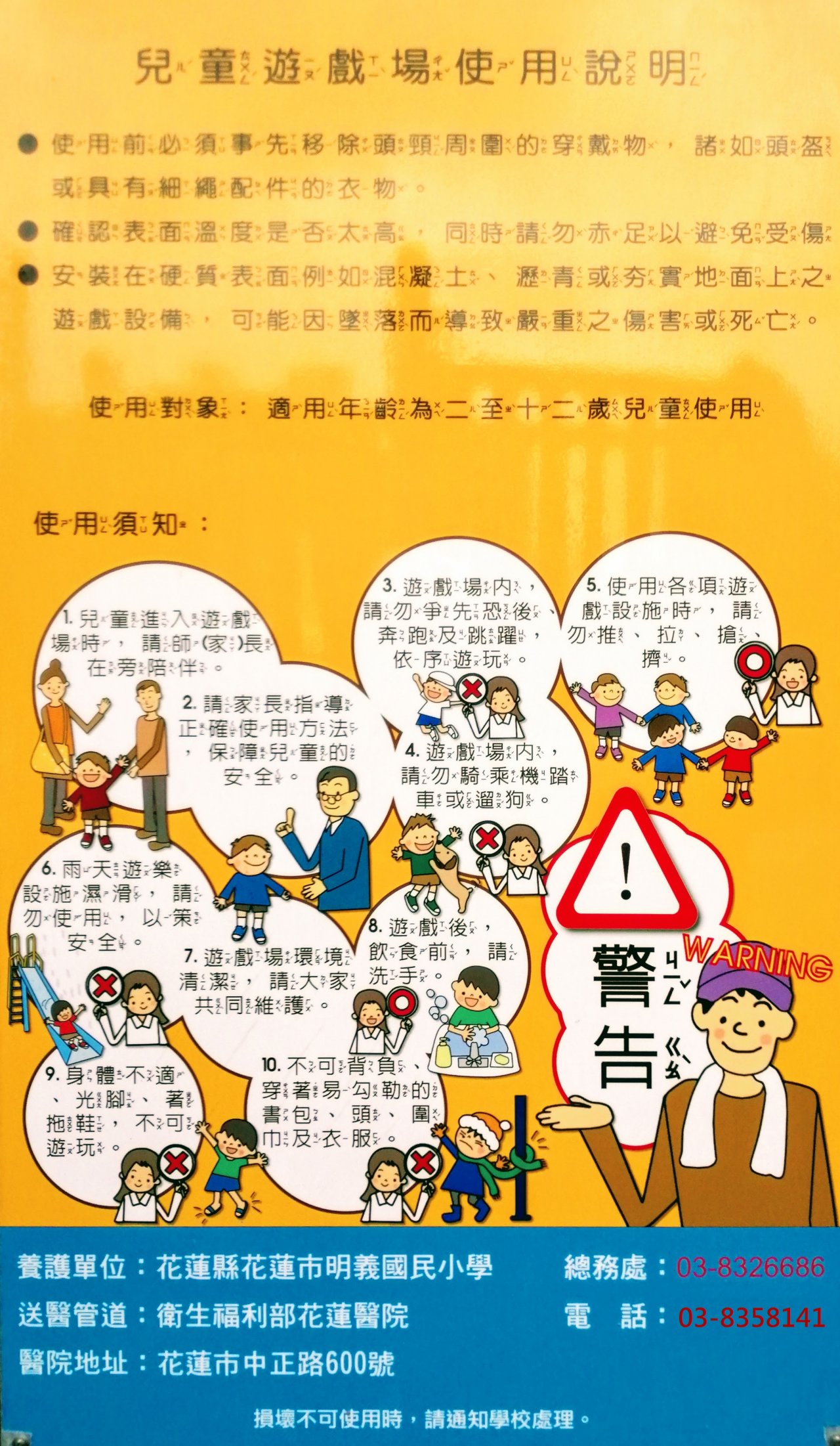 2. 遊樂器材部份,請同學務必遵守 「遊戲告示牌」上的規範(如圖)。