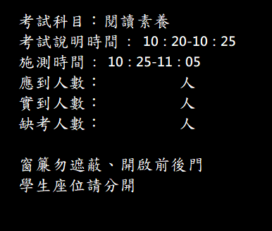 請避免於施測時程安排校內或校外各項活動影響測驗進行。