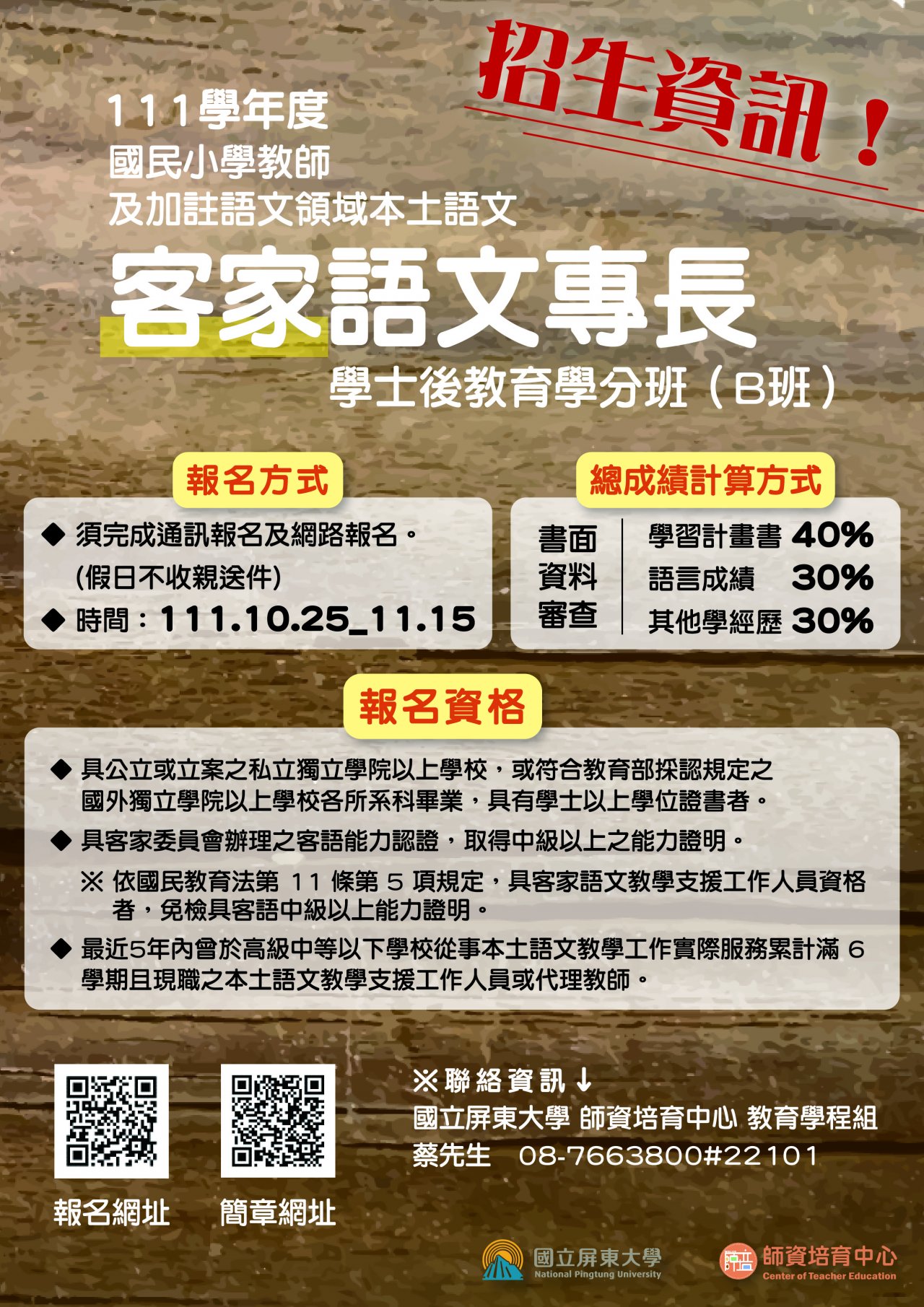 | 五、 | 聯絡資訊:國立屏東大學師資培育中心教育學程組蔡先生,電話:( 08 ) 766-3800 分機 22101 。 |