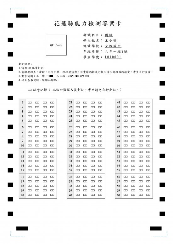 近期會印給各班數張,請老師提醒學生注意畫記方式。