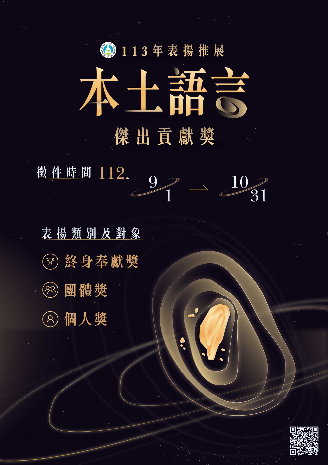 | 一、 | 依據教育部 112 年 7 月 19 日臺教社(四)字第 1122402678 號函暨 110 年 4 月 20 日臺教社(四)字第 1100039168B 號令修正發布之「教育部表揚推展本土語言傑出貢獻團體及個人實施要點」辦理。 |