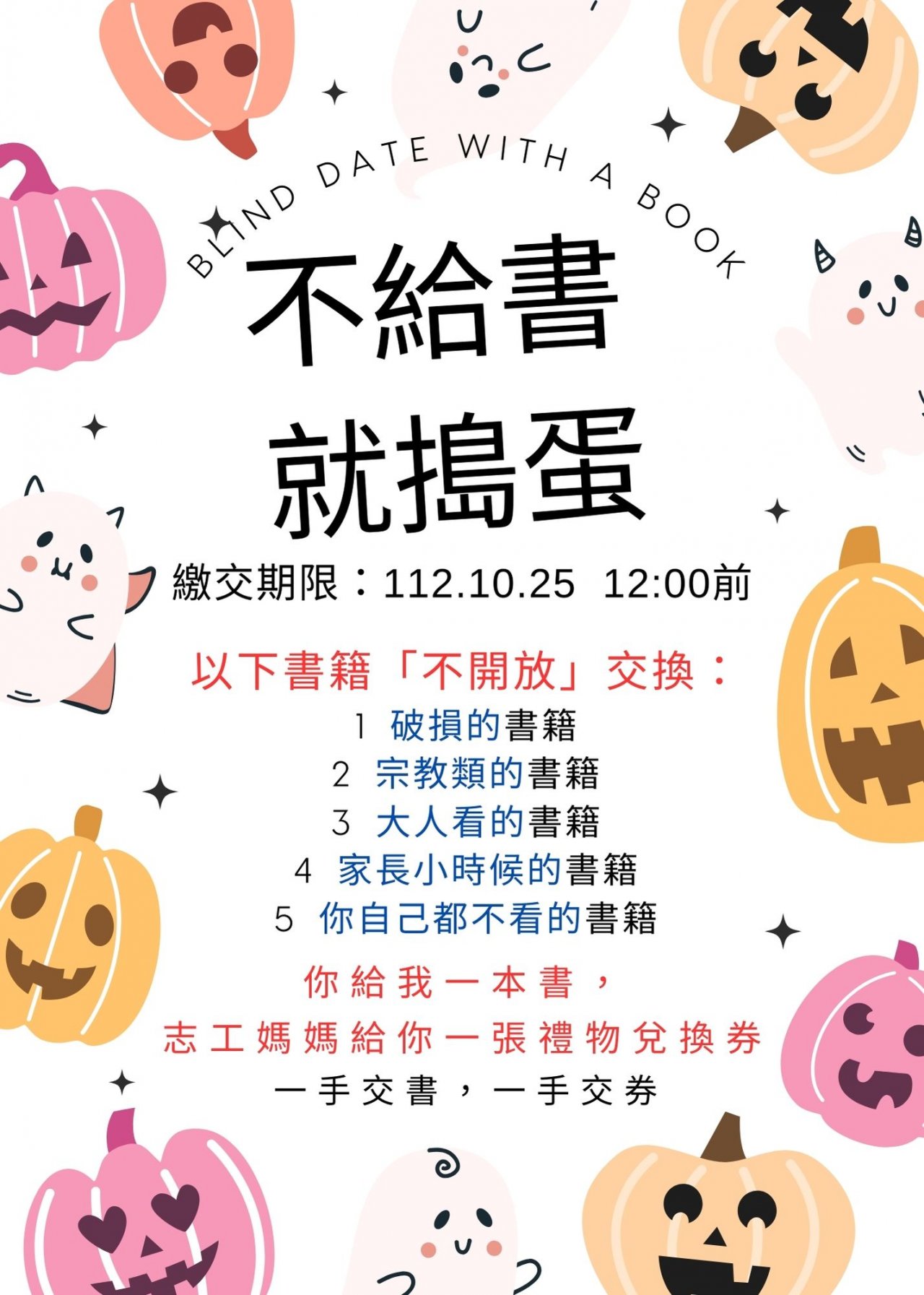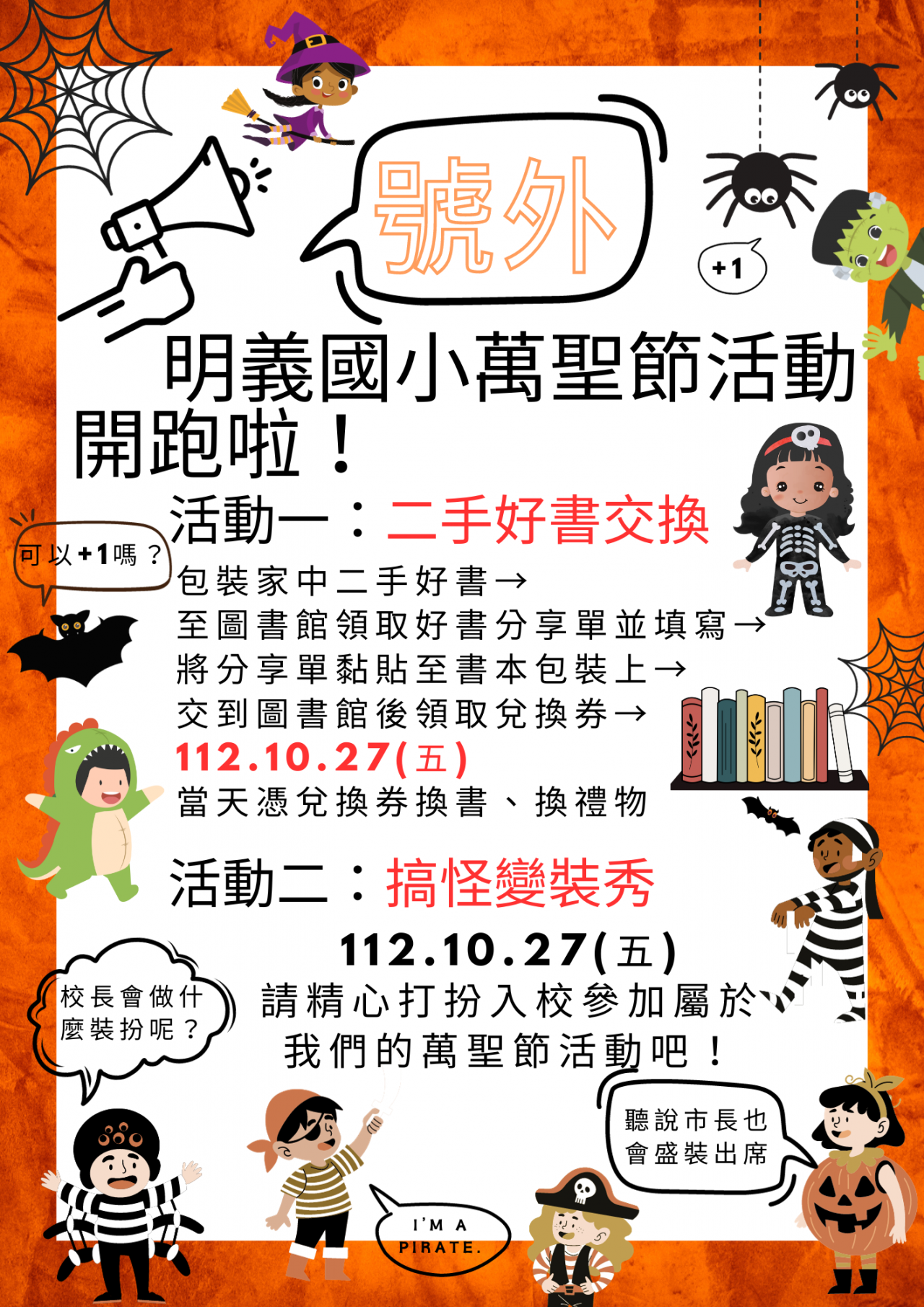 (二) 好書交換活動日-萬聖節搞怪變裝(112.10.27 8:15-9:30)
