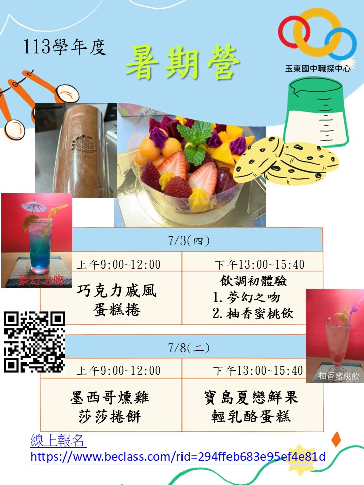玉東職業試探與體驗示範中心 113 學年度暑期營隊課程,鼓勵各校踴躍報名參加