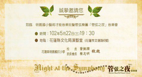本校藝術才能音樂班舉辦「管弦之夜」音樂會,歡迎參加。