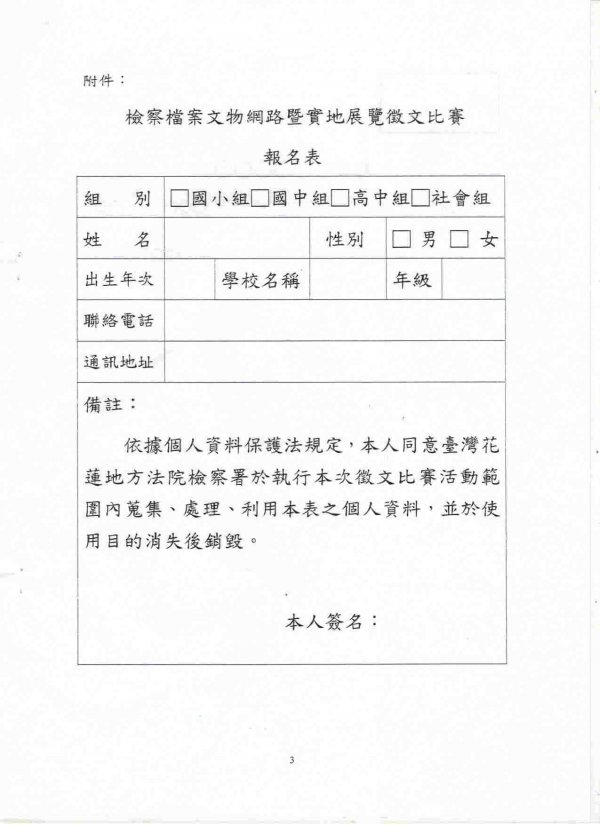 檢察檔案文物網路暨實地展覽徵文比賽