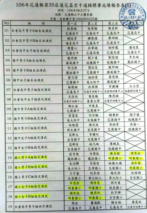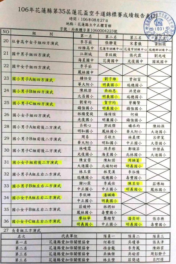 恭賀本校同學參加106年花蓮縣第35屆蓮花盃空手道錦標賽成績斐然!