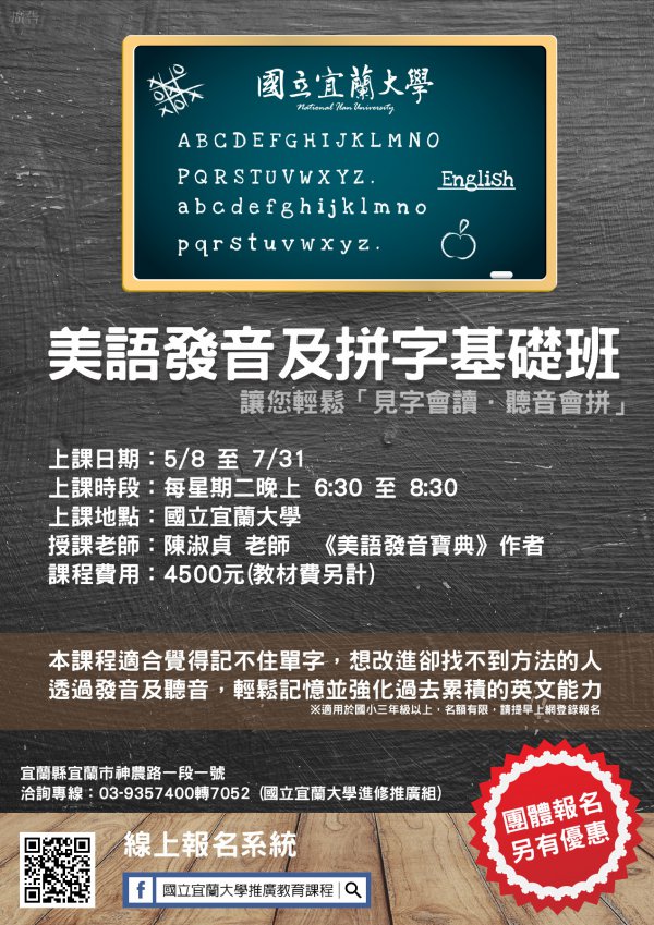 | (三) | 授課對象:國小三年級以上對英文有興趣之民眾。 |