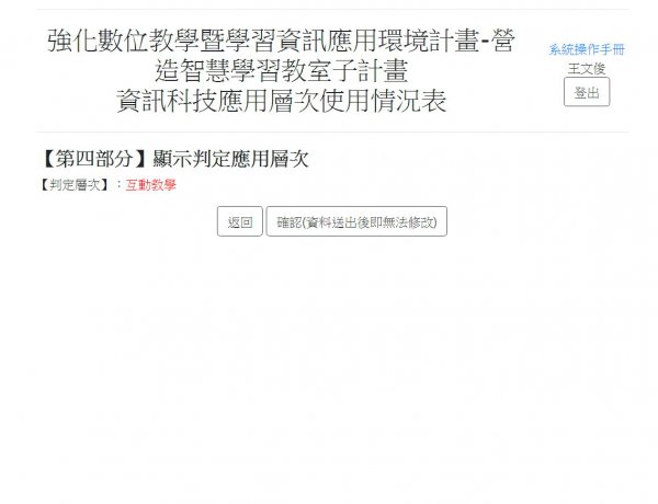 (五)補充說明:從第8題至12題勾選(很少或從不),就不需要上傳佐證資料(判定層級為互動教學)!