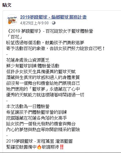 《2019 夢踐籃球》- 百花綻放女子籃球體驗營
