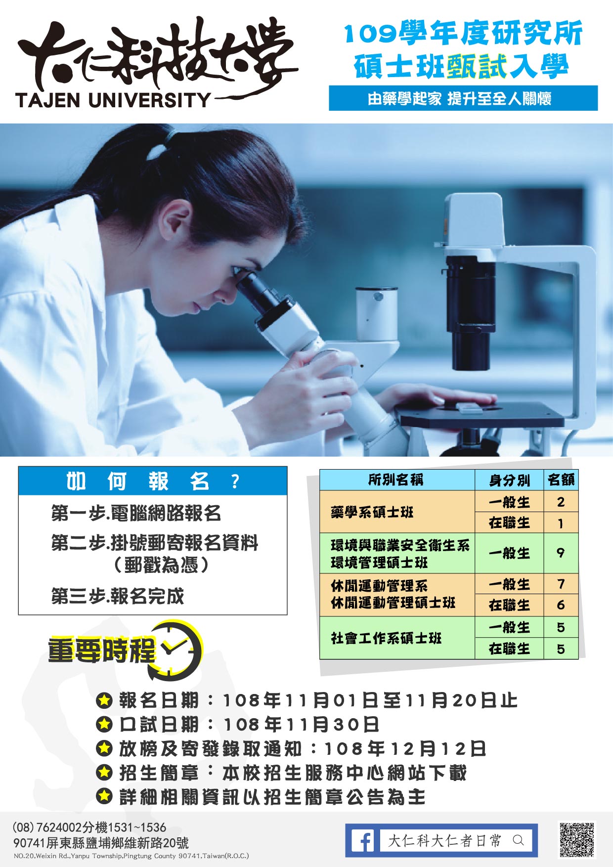 二、招生系所、報名方式、錄取人數依招生簡章及本校最新公告為主。