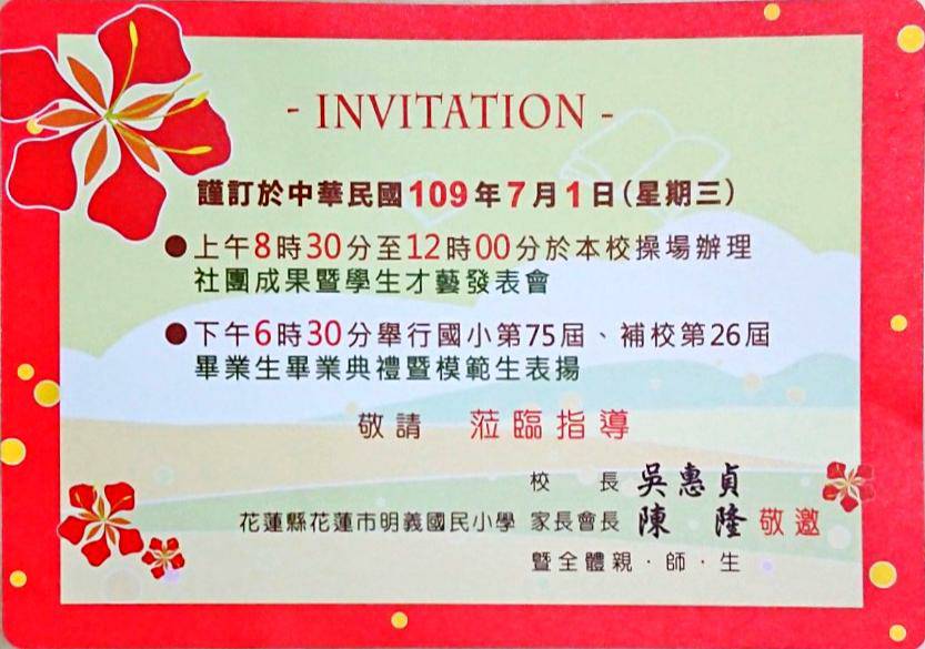 為了彰顯明義國小多元學習特色、展示學生學習成果、聯絡親師生感情,本校將於109年7月1日(三)上午8:30~12:00辦理108學年度社團成果暨學生才藝發表會。誠摯的邀請您一起來參與我們繽紛熱力的社團成果發表。