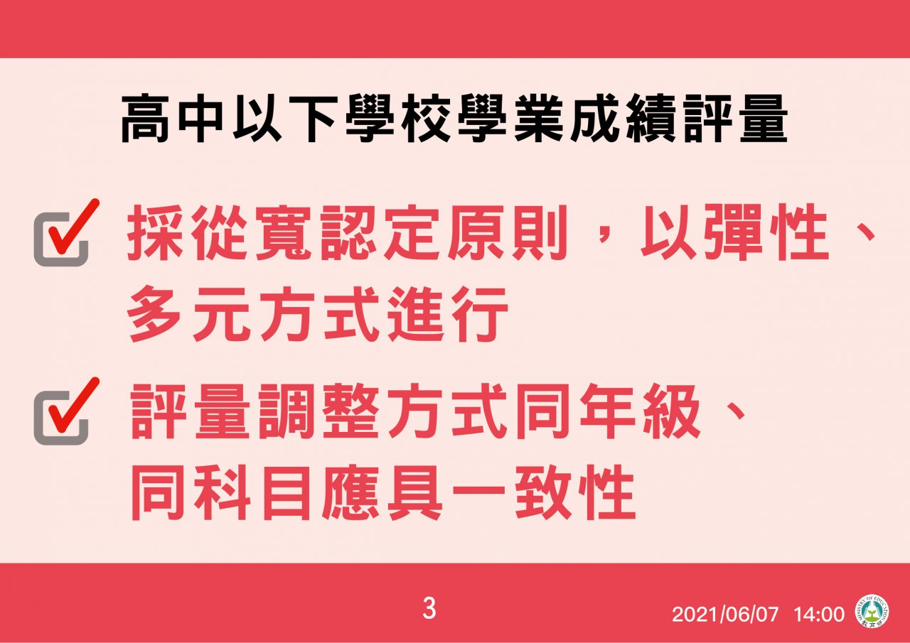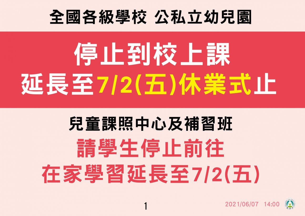 針對目前疫情仍未穩定,蘇貞昌院長在審酌各部會意見後,凝聚共識並做出裁示:延長全國的三級警戒管制,為期兩週至 6 月 28 日,全國各級學校也配合停止到校上課至暑假,相關措施由陳時中指揮官於今日下午指揮中心例行記者會中宣布。蘇院長表示,因應三級管制,請教育部做好大學指考的相關防疫規劃,包括試務人員的疫苗接種、試場的分流等政策,也要配合指揮中心並妥為對外説明。