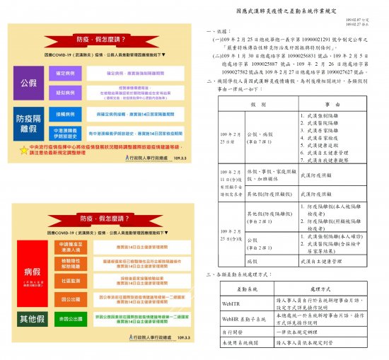 公告因應武漢肺炎疫情之差勤系統作業規定-1090227修正版