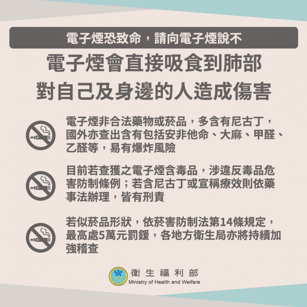 | (四) | 衛生福利部臉書貼文「電子煙恐致命,請向電子煙說不」。 |