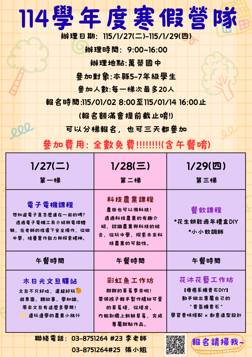 | 一、 | 營隊時間:115/1/27(二)-115/1/29(四) |