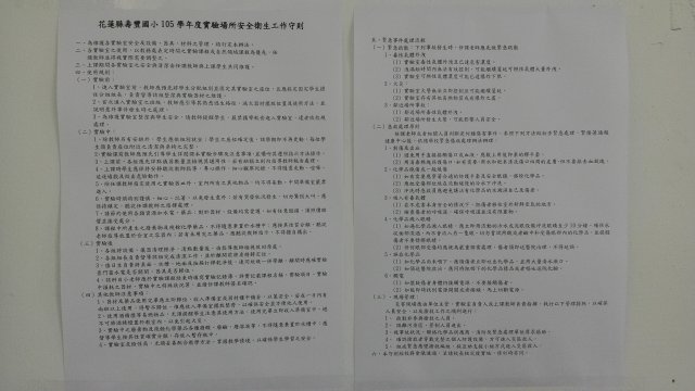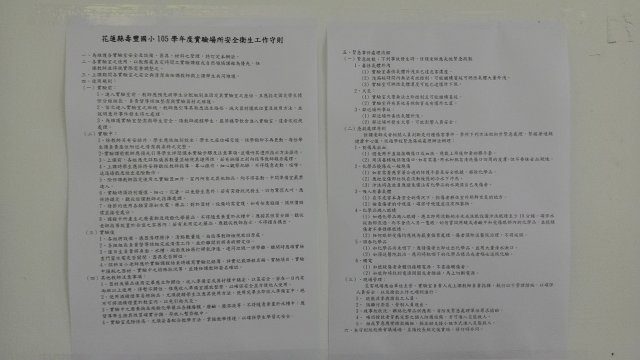 壽豐國小105學年度『場所安全衛生工作守則』