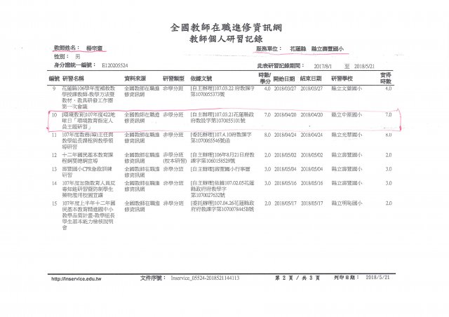 106學年度遴派教職員參與政府機關辦理之環境教育相關研習活動