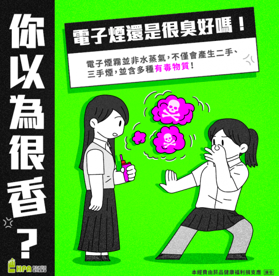 「菸害防制法」相關法規宣導,提醒學生 避免於社群平臺或網路張貼、分享及展示菸品(含電子 煙)、吸菸及使用電子煙行為之圖像、影片或文字內容, 並強化媒體識讀、法治觀念教育及正確使用網路行為等, 以降低學生受不當網路資訊影響而造成健康危害或違法風 險。
