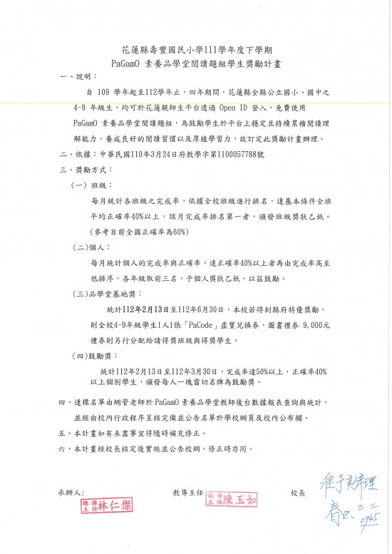 壽豐國小課程總體教學計畫