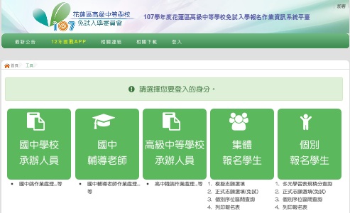 109學年度花蓮區高級中等學校免試入學報名作業資訊系統平臺