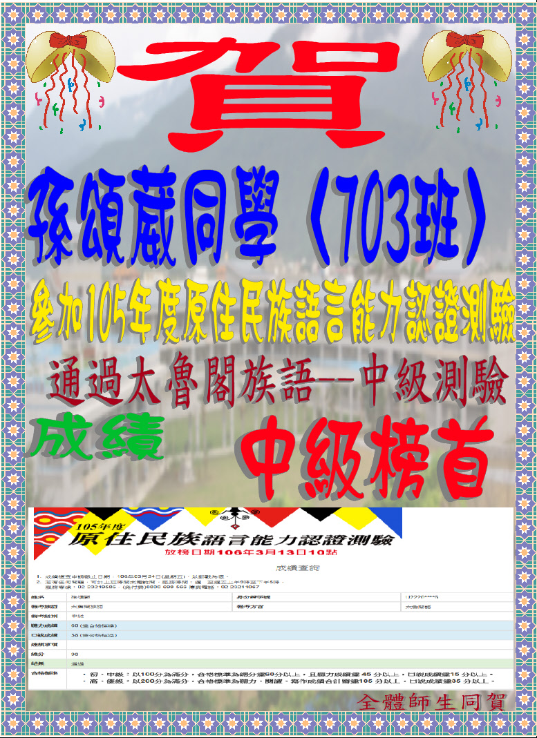 原民族語測驗中級榜首