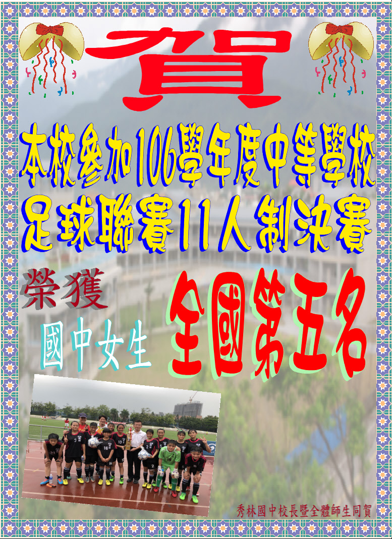 106學年度中等學校足球聯賽11人制決賽,榮獲國女組全國第五名