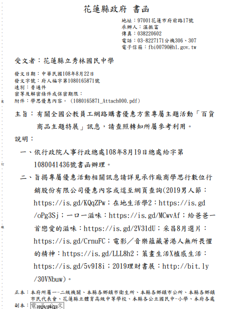 有關全國公教員工網路購書優惠方案專屬主題活動「百貨商品主題特展」訊息,請查照轉知所屬參考利用。