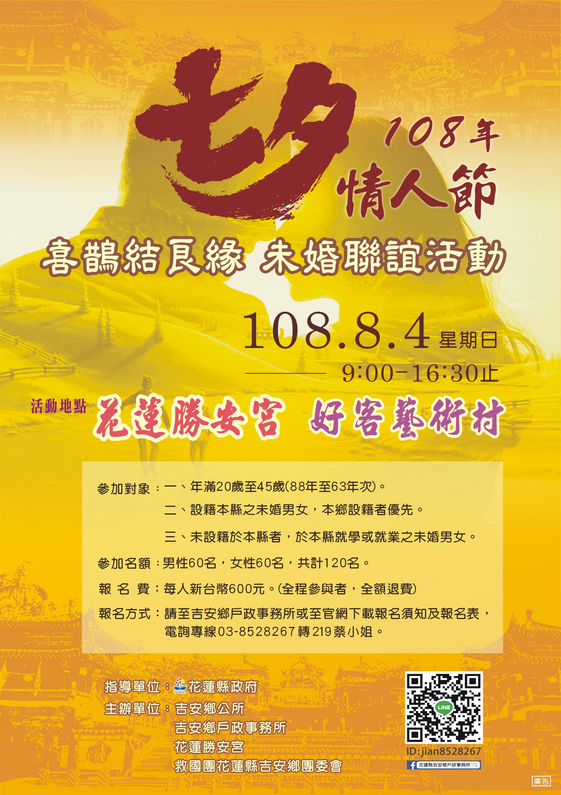 吉本縣安鄉公所辦理「108年七夕情人節-喜鵲結良緣」未婚聯誼活動,歡迎同仁參加。
