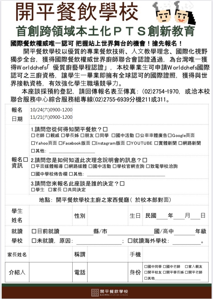 三、地點:開平餐飲學校主廚之家西餐廳(台北市大安區復興南路二段148巷15號)