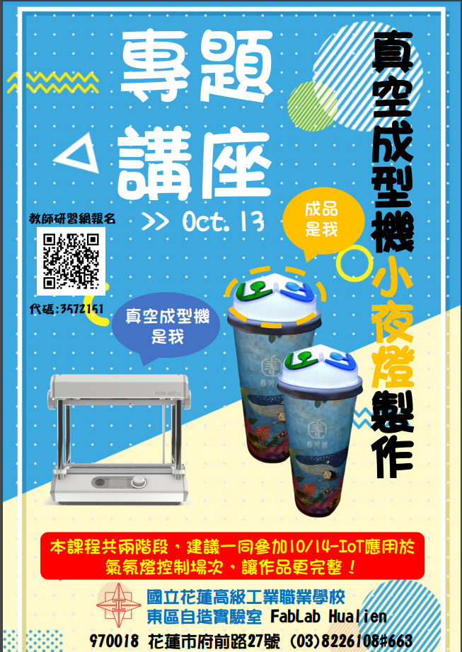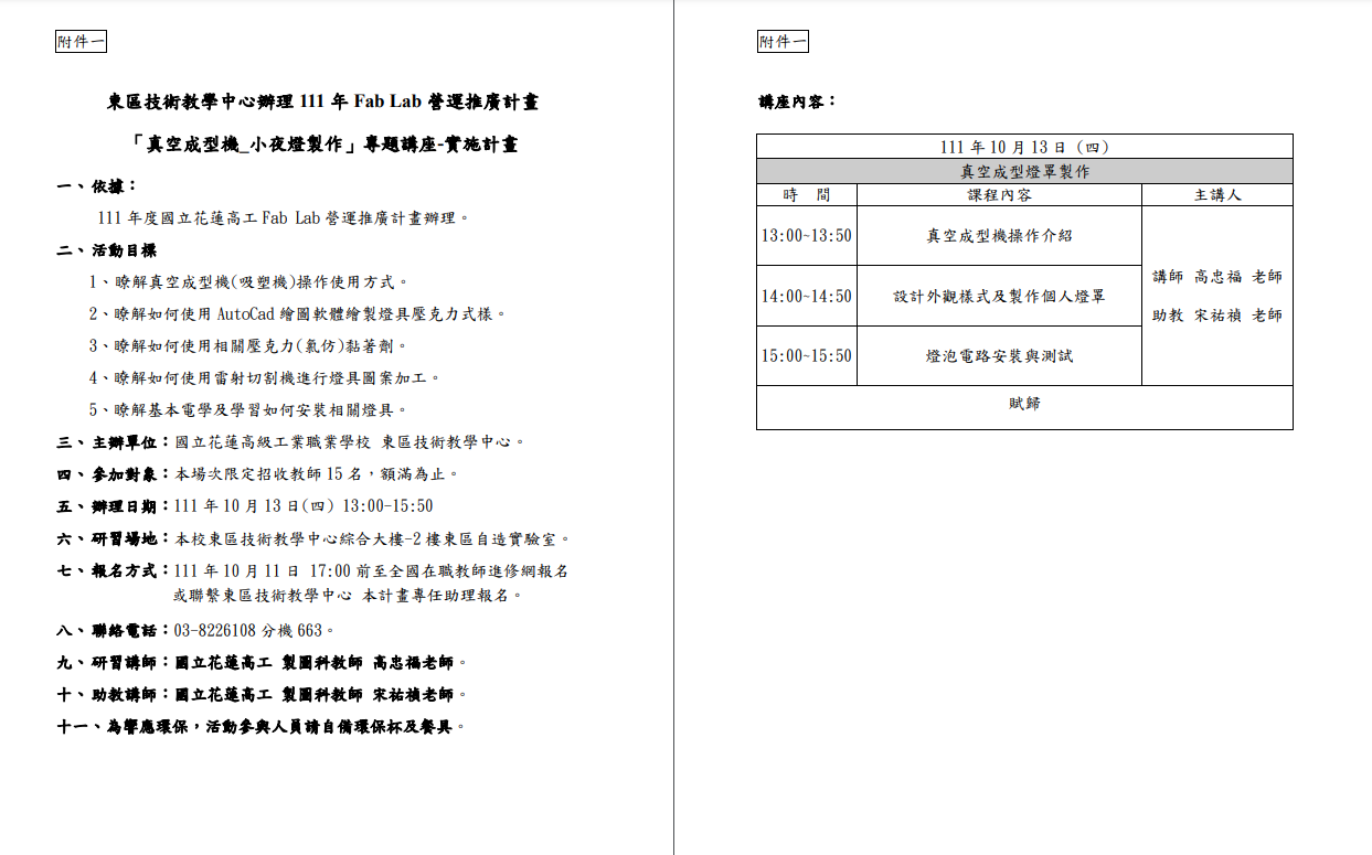 二、研習場地:國立花蓮高級工業職業學校新棟綜合大樓-2樓東區自造實驗室。