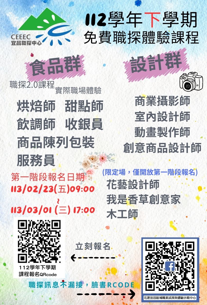三、第一階段報名時間自113年2月23日9時起至113年3月1日17時止,請逕自前往宜昌國中校網公告中點選報名連結,或至BeClasse 線上報名系統搜尋「宜昌國中」(https://reurl.cc/RWRQZG 進行報名作業,錄取名單將於 113年3月4日公布於職探中心粉專。