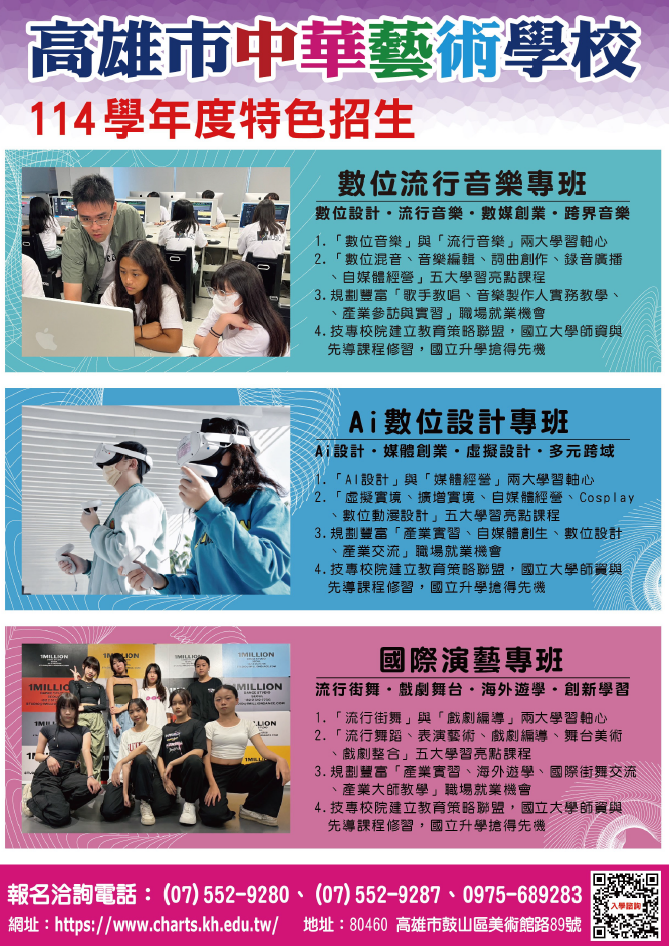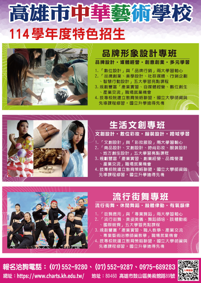 【特色招生】高雄市私立中華高級藝術職業學校日間部正規班114學年度特色招生資訊