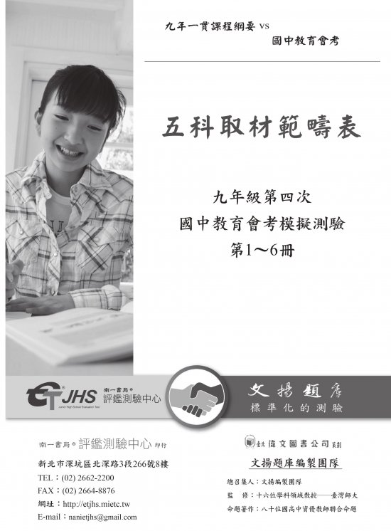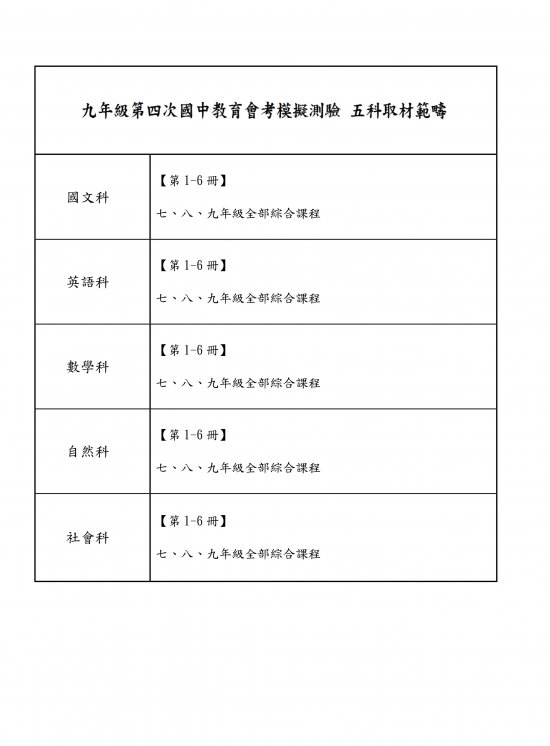107年4月25、26日辦理全國第四次模擬考本校第三次模擬考及106學年度九年級第四次教育會考模擬測驗五科取材範疇表