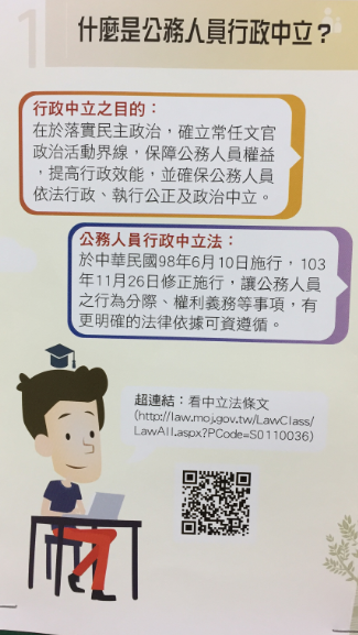 公務人員行政中立不可不知關鍵事宣導摺頁,請查照。