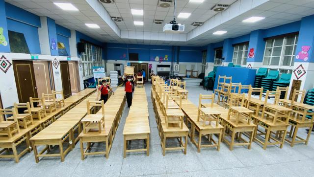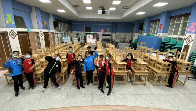 等了好久~新桌椅終於來啦! 感謝六年級學長姐協助將桌子依高度分類,明天我們就可以搬進教室,坐著新的椅子,倚著新的桌子上課、寫作業,只是桌椅有點兒重。 後記~三甲小女生告訴我說,新桌椅很香,每天上課都香香的 真的嗎?我低下頭,用力的吸,好像有那麼一點......