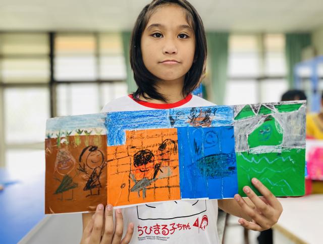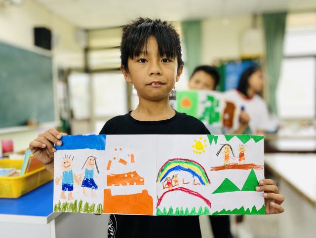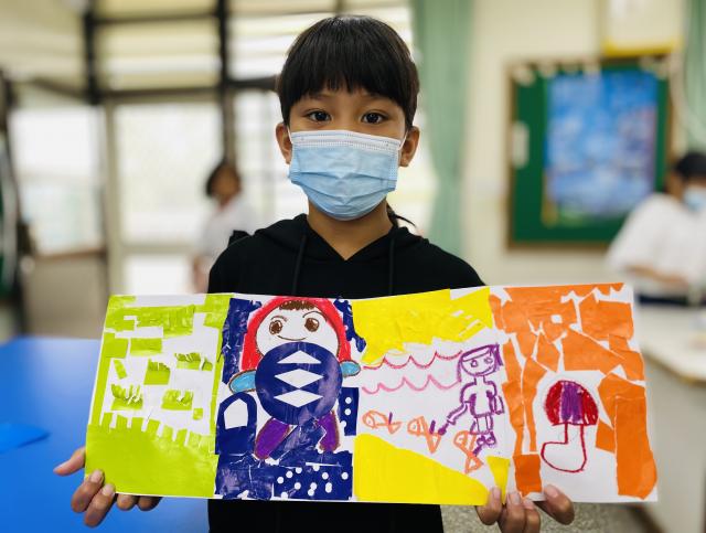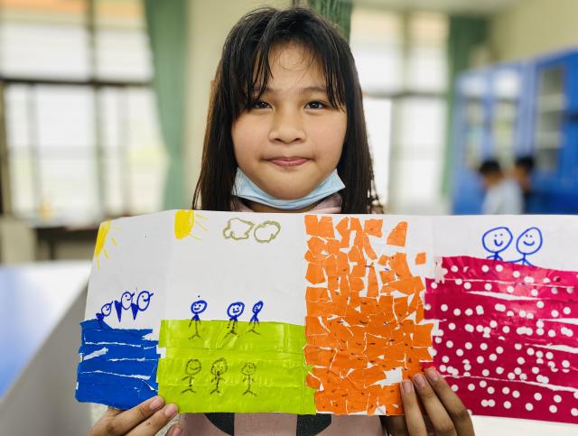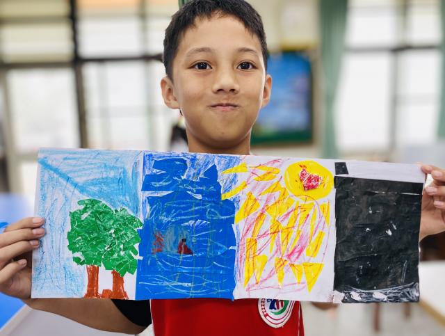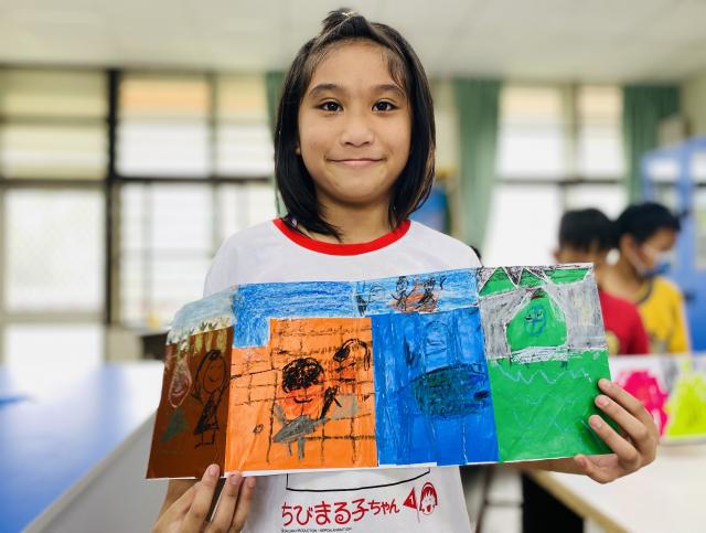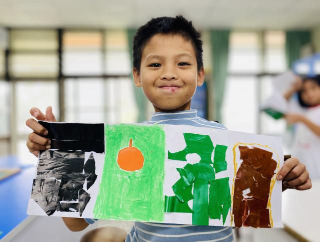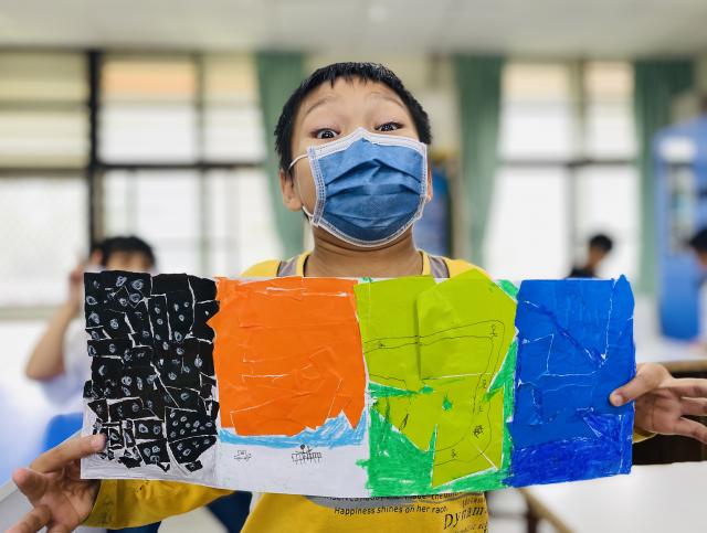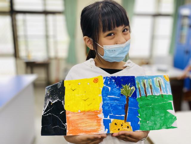 完美的正方形(麥可.荷爾 三之三文化)~正方形以自己的完美特質為傲~被切、撕、扯、揉……,變成了各種有趣豐富景象,原來完美不一定好。 最後正方形把自己變成一扇窗戶,望向一座山;山生出河;河上跨一座橋;橋通往公園;公園裡有花圃;花圃中央有噴泉,自己十分開心。 如果給孩子一張色紙,隨便你做,整張都要用完,他會變成什麼? 四甲孩子的四格小書做的很棒喔!