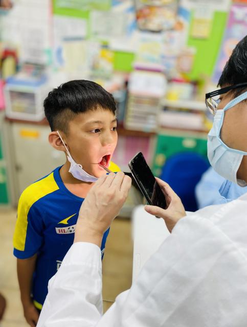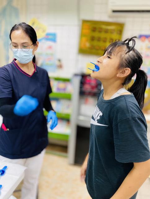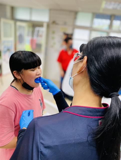 塗氟,水果口味的~讓牙齒裹上一層氟衣,細菌進不來~