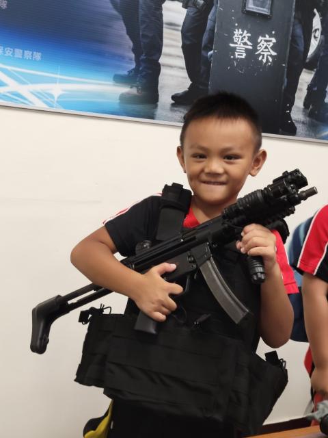第一站就是我們花蓮縣的警察局,我很喜歡這一站,第一次坐過警察的重機,也是第一次拿到真正的手槍、步槍、衝鋒槍,當我拿到超級重的防彈殼,就體會到警察一定很辛苦,更何況他們還要穿很久。霹靂小組哥哥還介紹了很多武器裝備,我對步槍最有興趣,因為步槍的外型很酷、威力也很大,它看起來很像很輕,但實際拿的時候超級無敵重,所以大家不要有事沒事就吵架打架或之類的,造成警察的困擾。