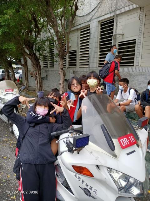 我騎在重機上的那一刻,覺得自己很帥又很酷,尤其是那個鳴笛很響亮~四個人一起出警一定很帥!我還坐在重機上面拍照呢!其實來到警局前的路途中,我們就看到四個警察騎著重機出勤,不知道是什麼案子,希望他們出勤順利。