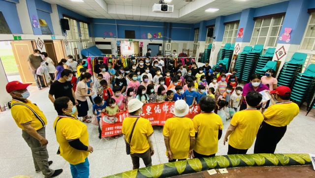 感謝鳳林武聖宮 致贈每個孩子一件羽絨外套,叔叔阿姨將所有外套掛上衣架,頓時舒揚館變成了大賣場的服裝部,我們七嘴八舌、邊欣賞邊挑衣服,好開心喔!