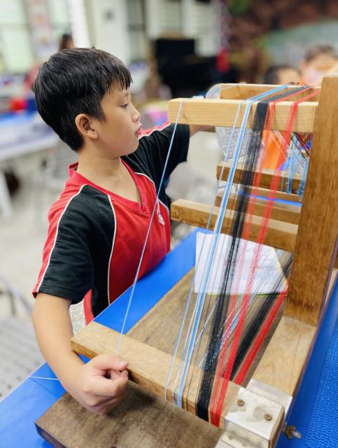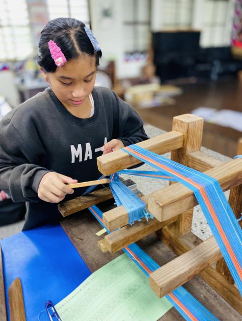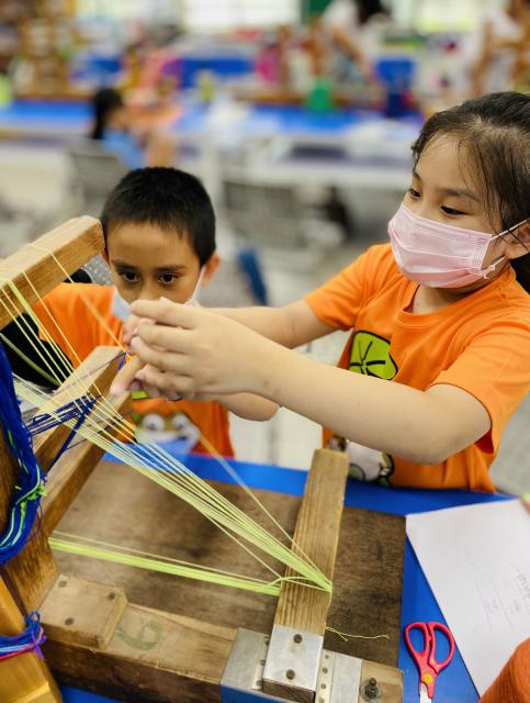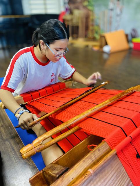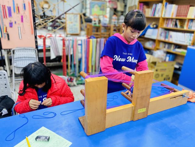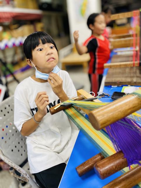 每週三下午~我們就成了快樂的織布鳥,努力編織美麗的布疋